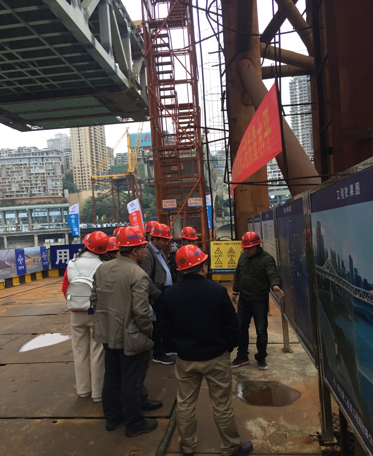 5日下午,考察组一行到达重庆大学,重庆大学土木工程学院桥梁与道路工程研究所所长狄谨教授亲临接待,他现场介绍了重庆大学土木工程学院的历史以及主要研究领域,并带领考察团实地参观了重庆大学重点实验室及曾家岩大桥在建工地,双方就桥梁的病害防治、试验检测及施工监控等方面展开了深入细致的探讨与交流。