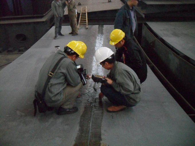 2011年5月10日~12日,宁波市交通建设工程试验检测中心派员赴江苏钢箱梁制作单位对宁波穿好至好思房公路工程预制钢箱梁进行厂内焊缝探伤检测。