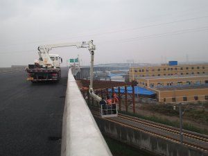 本次检测的重点是宁波市绕城高速公路东段的高架桥及匝道桥的外观质量,由于99%都是高架桥,因此检测工作基本都是在桥梁检测车或登高车上进行,属于高空作业,因此,安全工作是重中之重。检测中心本着“安全第一,预防为主,综合治理”的原则,依据检测技术方案,在我中心的安全管理体系下,制定了详细的安全管理规定和安全防范措施,并在现场配备专职安全员,保证整个检测工作安全可控。检测过程中,检测人员发扬不怕苦不怕累的精神,晴天桥上,雨天桥下,放弃休息时间,连续作战,表现出了顽强的战斗力和强大的凝聚力,最终高速、高质地完成了本次检测艰巨的任务。