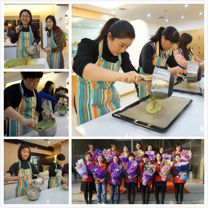 搅拌,烘烤,裱花……烘焙教室里弥漫出浓浓的抹茶蛋糕香气。为纪念“三八”国际劳动妇女节,让公司女职工过一个难忘而有意义的节日,在公司领导的关心和支持下,工会开展了以烘焙为主题的妇女节活动。