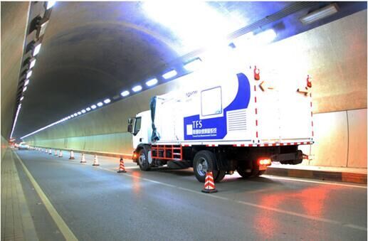 ZOYON-TFS隧道快速测量系统,以中型卡车作为车载平台,在平台上安装多个精密传感器,通过无损检测方式,一次通行即可完成全部隧道综合数据的采集。该系统以0-80km/h速度对隧道进行动态连续检测,持续时间工作长度可达每天8h,每日检测里程可达500km,裂缝精度达到0.2mm,解决了目前隧道检测的速度、精度和安全问题,为我公司后续开展大规模隧道病害预防性检查提供了可靠的硬件保障。