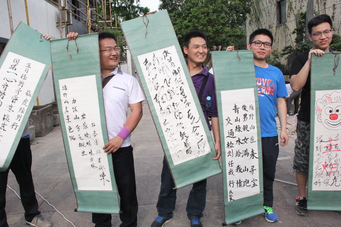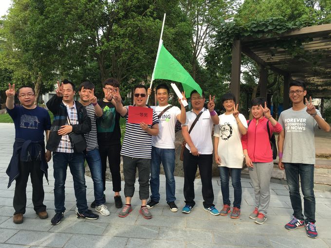 素拓活动以“取队名、画队旗、想口号”开始,经过头脑风暴诞生了风格迥异、特色鲜明的八支参赛队伍。“加油!加油!使劲!”在声声的呐喊中,拔河比赛拉开了序幕,只见双方鼓足了士气,红色绸带随着整齐的“一!二!”口号声左右摆动,尽显“彪悍本色”。在之后的“潘多拉之信”环节中,各个参赛队可以选择任意环节进行挑战,并在规定的时间内完成任务返回起点方为成功。有智力比拼的“数字密码”,消耗体力的“指压板跳绳”,还有考验默契配合的“惺惺相惜”、“平衡迷宫”、“你画我猜”、“生死时速”等团队合作任务,使大家深刻体会到团队内部协作处理、精密配合的重要性。在活动的最后,各个参赛队各显神通,创作出“五月绿野寻春意,猛虎上山现朝气,团结一心齐努力,勇往直前创佳绩”等多首朗朗上口、独具特色的打油诗,整个素拓活动在其乐融融的气氛之中完美收官。