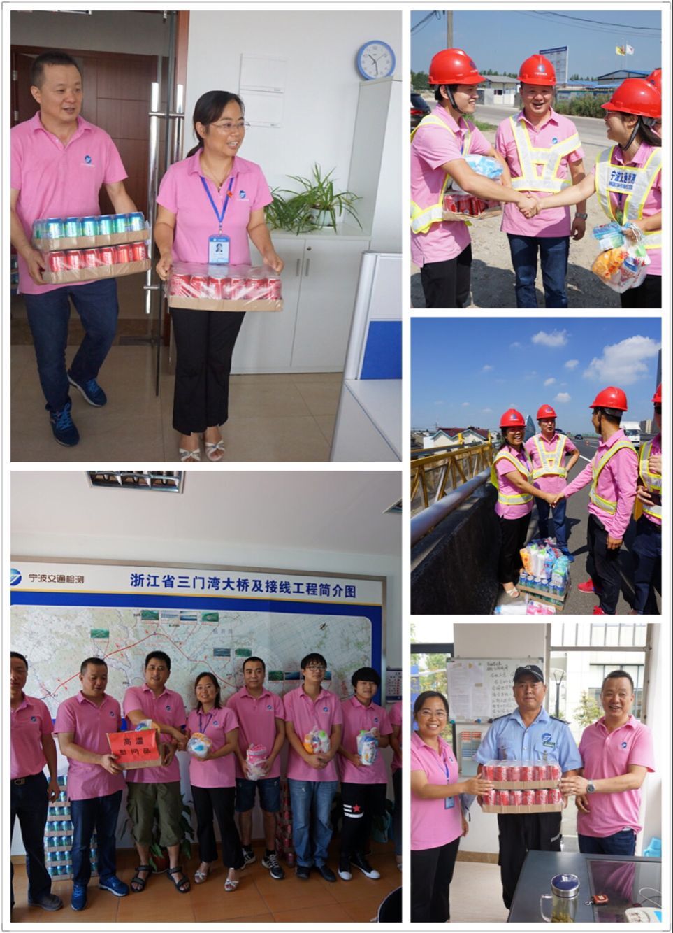 7月中旬以来,高温来势凶猛,我省大部分地区迎来了37度以上的酷热天气,近期甬城更是“炎”值报表,连发高温红色预警信号,最高气温连续高达40度以上,滚滚热浪使一线检测人员承受着极大的“烤”验。为切实做好防暑降温工作,28日起,公司工会全面启动“高温送清凉,员工保安康”慰问工作,先后奔赴余慈、三门湾两个异地试验室、绕城高速公路西线、鄞州区高阳路(翻石渡至明光路)拓宽改造工程看望慰问奋战在高温第一线的员工,为他们送去一份清凉,捎去一片的关爱。