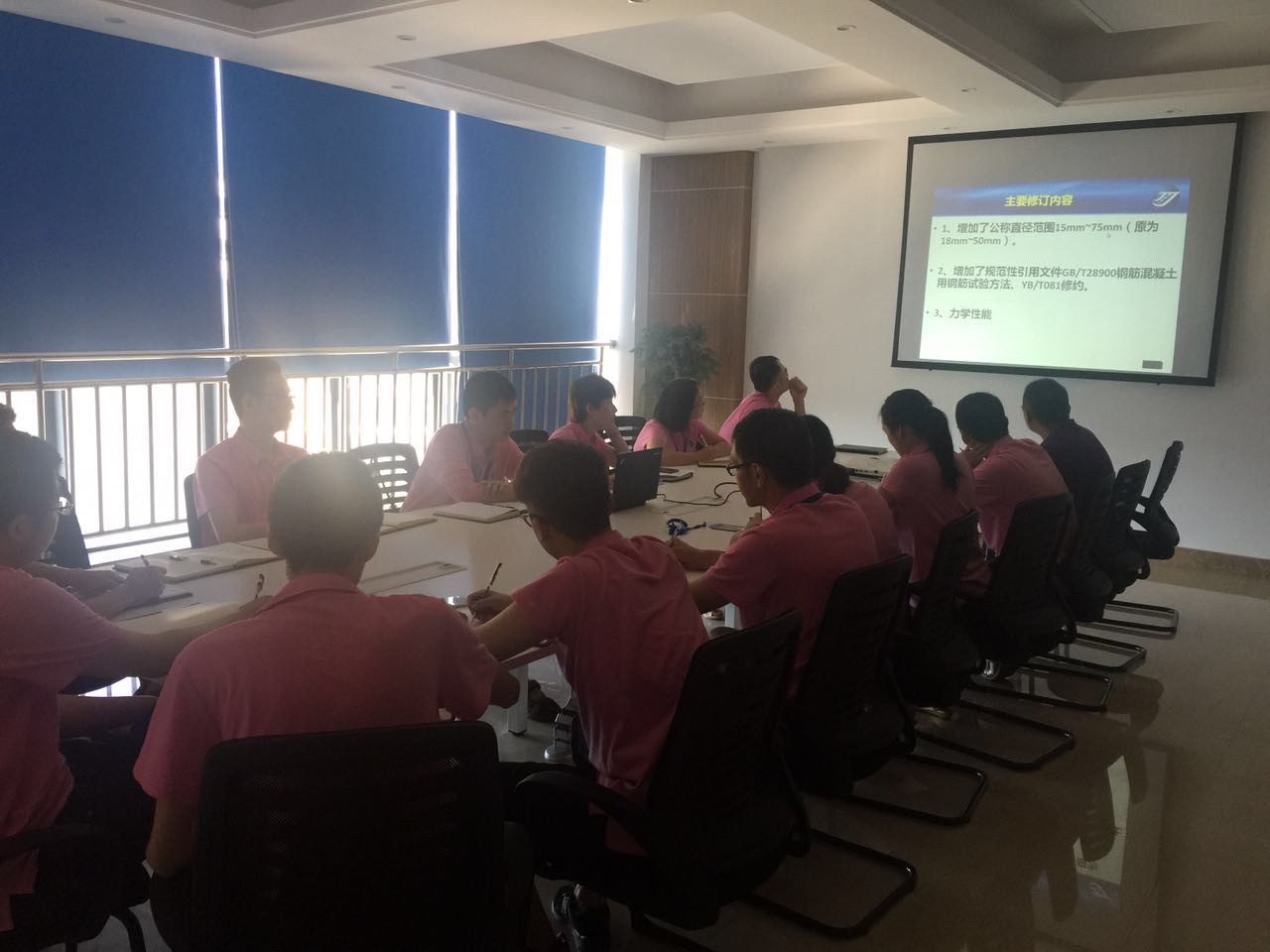 此次新规范学习由该项目负责人应震华主讲,主要就《预应力混凝土用螺纹钢筋》(GB/T 20065-2016)新增内容、引用标准、力学性能等方面进行详细讲解。随后,试验部主任以书面考试的形式对学习结果进行了考核。